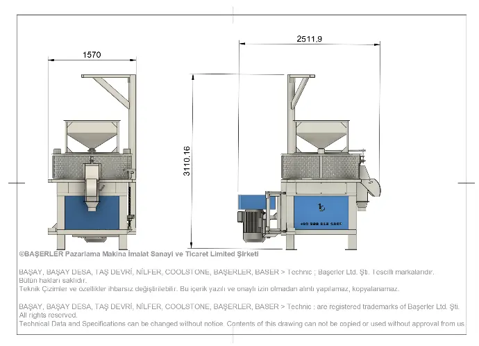 Giriş haznesi 250 kg'dır.